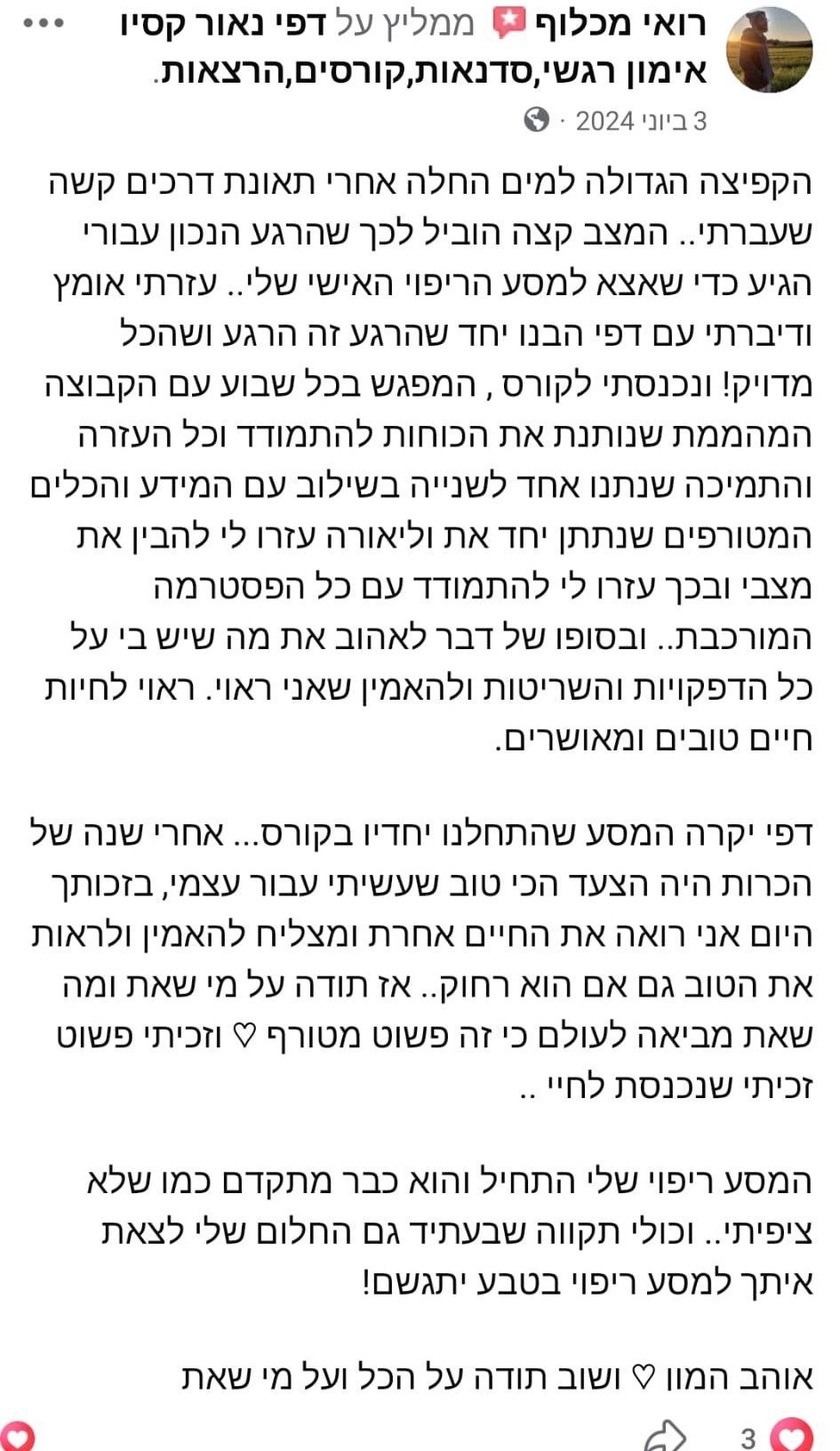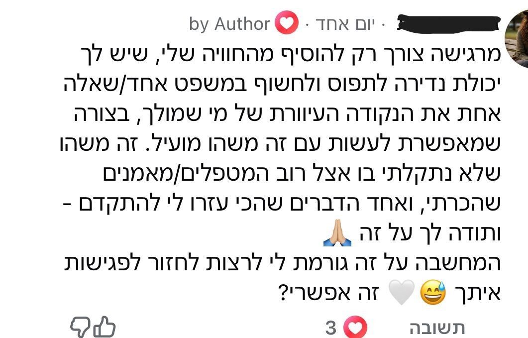למדתי שכשאני נותנת מקום לכל רגש שעולה, מקשיבה ומדייקת את הצרכים והרצונות שלי-
