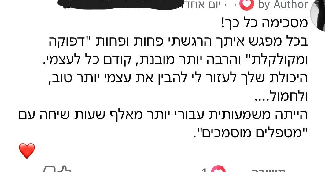 אני מאמינה שכל התשובות נמצאות אצלך- אני רק עוזרת לך להגיע אליהן.